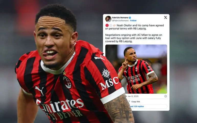 RB Leipzig dan AC Milan telah mencapai kesepakatan pinjaman untuk Noah Okafor ditambah klausul opsi pembelian senilai lebih dari € 25 juta. Pinjaman dengan gaji yang ditanggung oleh klub Jerman itu dan klausul pembelian bersifat tidak wajib. Tes Medis dan keberangkatan dijadwalkan besok.