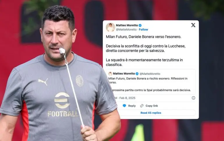 MaximalMilan - AC Milan diperkirakan akan memecat Daniele Bonera sebagai pelatih kepala Milan Futuro setelah serangkaian hasil negatif menurut sebuah laporan.