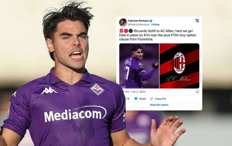 Benar saja, Fabrizio Romano telah mengonfirmasi bahwa Sottil dapat bergabung dengan Rossoneri setelah La Viola mendapatkan Nicolo Zaniolo dari Atalanta. Kesepakatan ini akan menelan biaya peminjaman sebesar € 1 juta ditambah opsi membeli € 10 juta.