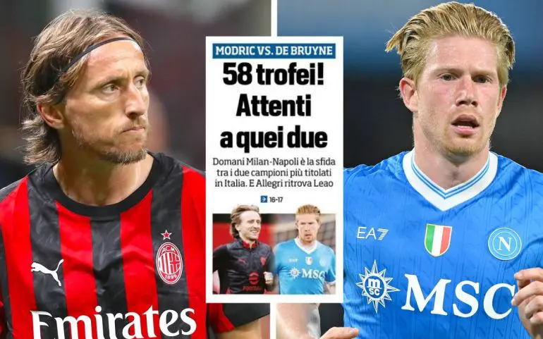 MilanNews mengutip Tuttosport yang melaporkan bahwa big match di San Siro akhir pekan ini tidak hanya pertarungan dua pelatih hebat yaitu Massimiliano Allegri dan Antonio Conte, tetapi juga duel dari dua maestro sepakbola yaitu Luka Modric dan Kevin De Bruyne.