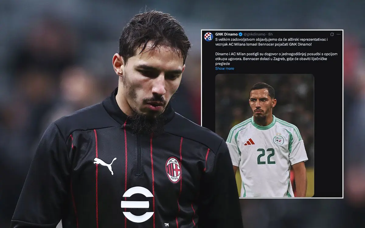 "Ismael Bennacer ke Dinamo Zagreb, pinjaman gratis dengan opsi untuk membeli. Dinamo Zagreb akan menganggung 40% dari gaji sang gelandang."