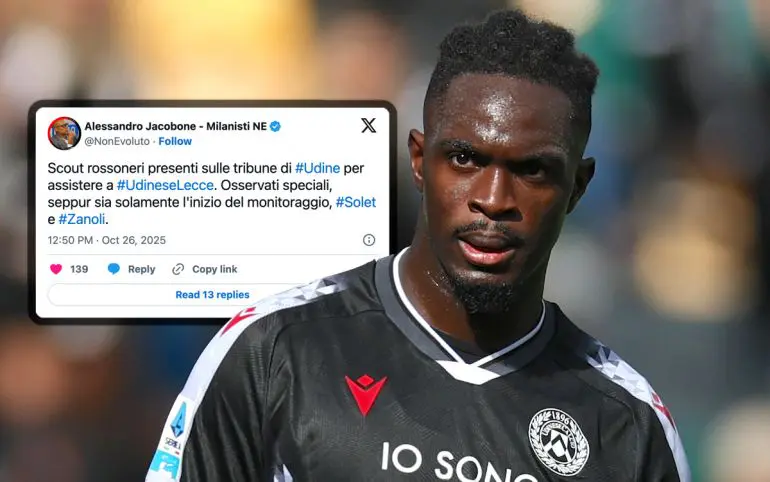Alessandro Jacobone melaporkan bahwa pencari bakat Milan hadir untuk menyaksikan pertandingan Udinese melawan Lecce. Dia bahkan menyebutkan nama yang dipantau Rossoneri adalah Oumar Solet dan Alessandro Zanoli yang merupakan bek tengah dan bek kanan.
