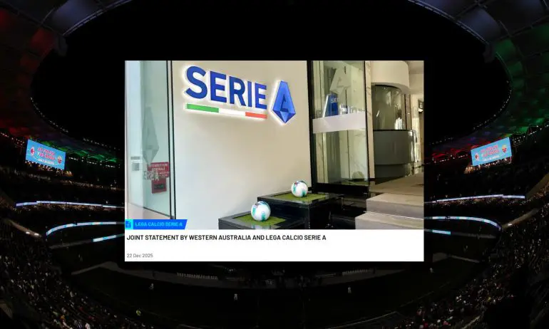 "Namun kondisi berat dari konfederasi Sepak Bola Asia (AFC) untuk memberikan sanksi pada pertandingan tersebut tidak dapat diterapkan tanpa risiko keuangan bagi Pemerintah Australia Barat dan Serie A yang tidak dapat dikurangi."