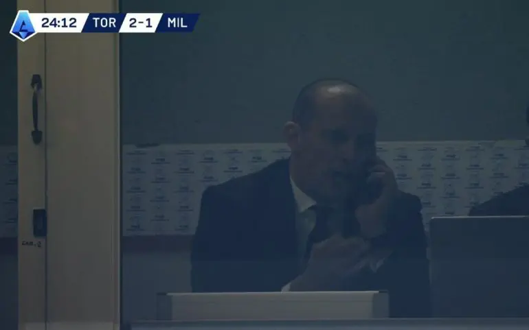 Tak lama setelah gol Duvan Zapatan, Allegri merogoh kantong dan mengeluarkan ponselnya dengan wajah tidak senang, mungkin menelepon Marco Landucci. Siapa pun yang ditelepon dan apa pun yang dikatakannya, pesan Allegri tampaknya diterima dengan baik setelah Rossoneri mampu comeback 2-3. Nih mimin kasih bonus wajahnya pelatih tercinta kita semua.