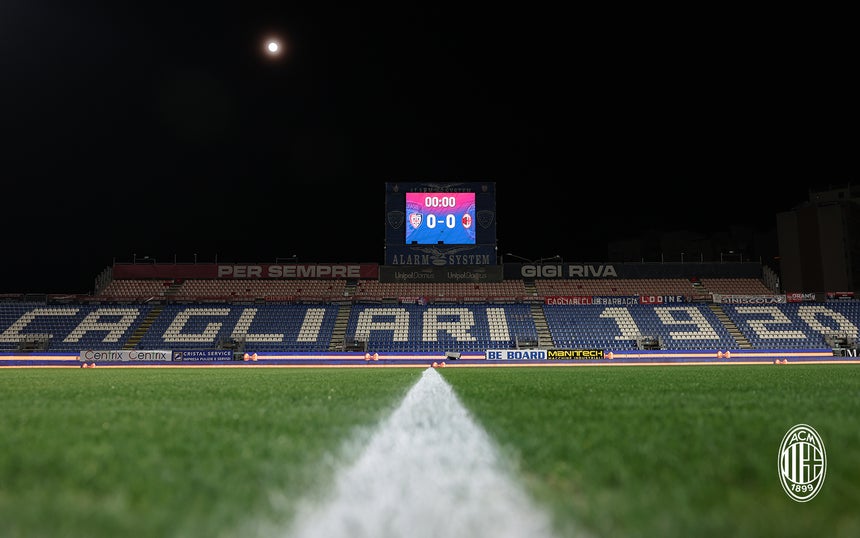 Babak pertama dimulai, secara mengejutkan Cagliari tampil menyerang dan terus mencoba menekan pertahanan Diavolo. Seiring berjalannya waktu, Milan mengambil alih permainan dan balik menekan tuan rumah, namun pertahanan kedua tim sama-sama kokoh sehingga skor kacamata bertahan hingga turun minum.
