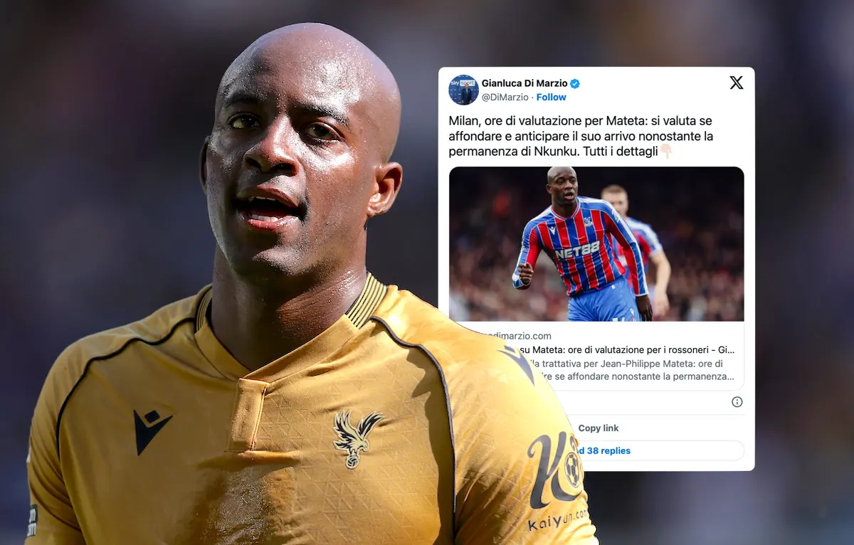 The Athletic melaporkan bahwa Mateta saat ini sedang menjalani tes medis setelah AC Milan dan Crystal Palace telah sepak biaya transfer sebesar € 30 juta termasuk bonus. Hal ini juga di dorong setelah tim London Selatan itu telah mendapatkan lampu hijau untuk kesepakatan Jorgen Strand Larsen dari Wolves.