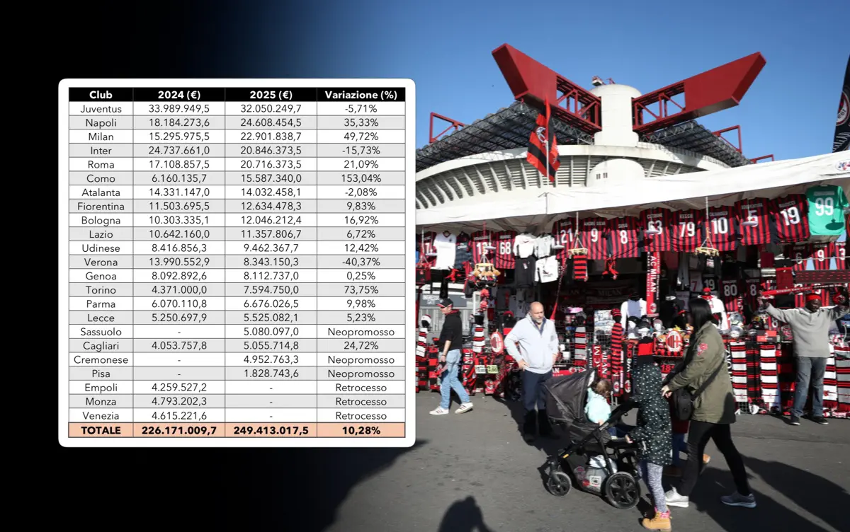 Calcio e Finanza melaporkan bahwa PSSi-nya Italia yaitu FIGC telah mengungkapkan biaya yang dibayarkan klub kepada agen olahraga di divisi teratas Italia untuk tahun 2025. Secara keseluruhan dari 1 Januari 2025 hingga 31 Desember 2025, klub papan atas telah membayar agen sebesar €249,4 juta. Jadi rata-rata €12,4 juta untuk setiap klub dan meningkat sekitar 10% dibandingkan tahun 2024.