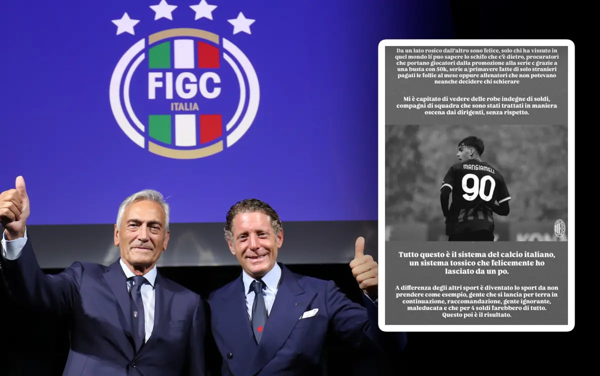 Federico Mangiameli pensiun dari sepak bola profesional pada usia 21 tahun. Sebelumnya dia bermain di akademi muda Milan hingga musim panas 2023, Federico melayangkan kritikan keras terharap sepak bola Italia yang lebih mengutamakan bisnis sehingga merusak banyak urusan terkait sepak bola itu sendiri, berikut komentarnya.